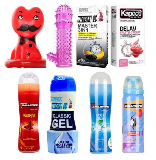 اما مانی کالا با ارائه یک پک کامل از بهترین محصولات زناشویی اصل این مشکل را برای شما حل نموده است. این پک شامل 8 محصول متنوع شامل کاندوم ساده و خاردار، اسپری تاخیری و ژل جنسی است.