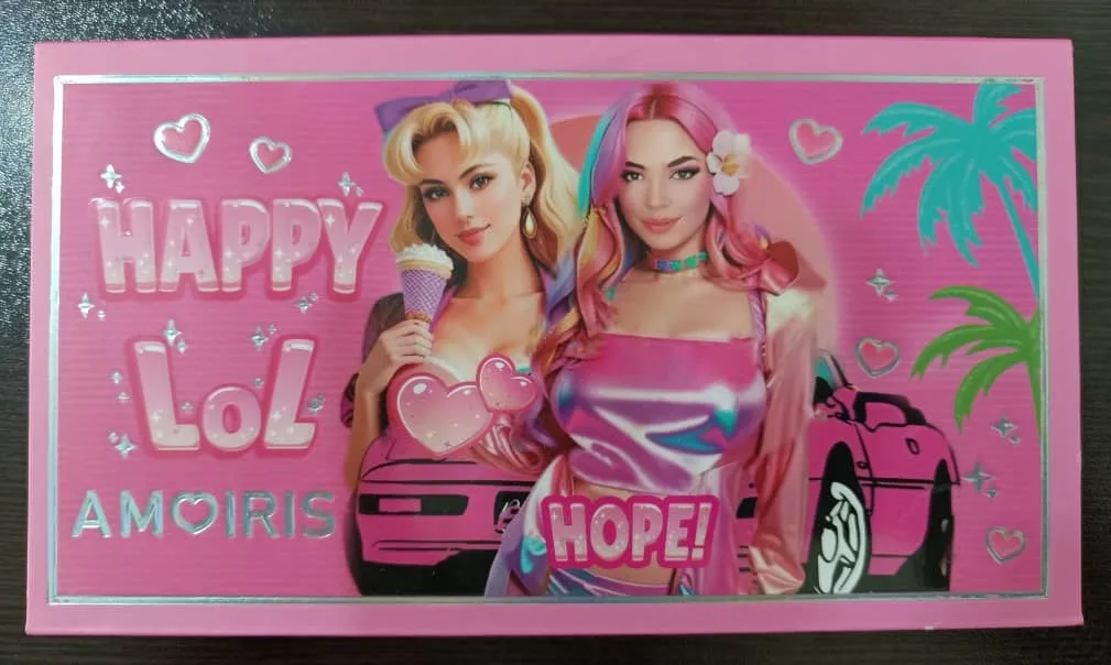پالت سایه 18 رنگ هپی HAPPY LOL کلاً ۱۸ رنگ شامل ۶ رنگ شاین، ۲ رنگ گلیتر و ۱۰ رنگ مات است. انتخابی کاربردی برای آرایش مات روزانه و براق شبانه است. ۱۰ رنگ مات پالت سایه 18 رنگ هپی HAPPY LOL حاوی روغن آرگان و آلوئهورا بوده که باعث کرم بودن بافت آن میشود. ماندگاری بالایی دارند. هم تکی و هم به صورت ترکیبی قابل استفاده است.
